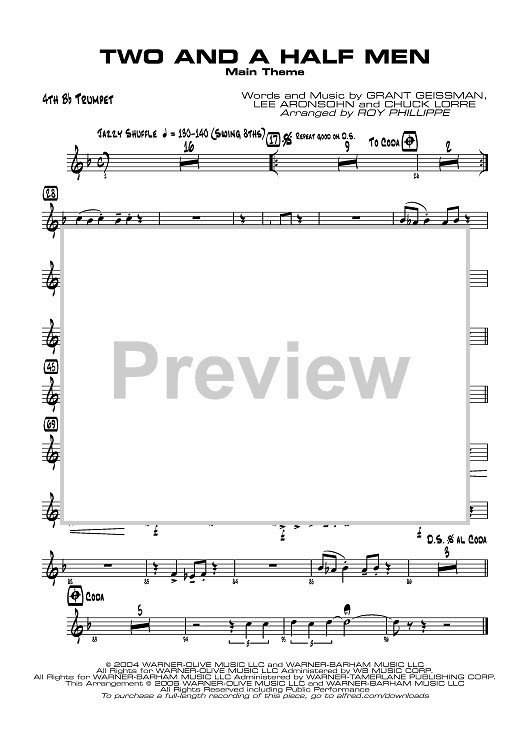 Digital Sheet Music for Two and a Half Men - B-flat Trumpet 4 by Roy Phillippe, Grant Geissman, Lee Aronsohn, Chuck Lorre scored for Jazz Ensemble; id:359716