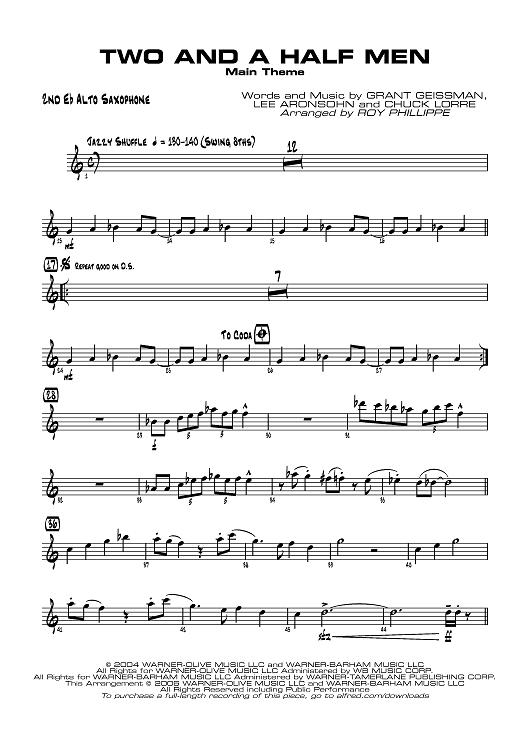Digital Sheet Music for Two and a Half Men - E-flat Alto Saxophone 2 by Roy Phillippe, Grant Geissman, Lee Aronsohn, Chuck Lorre scored for Jazz Ensemble; id:359709