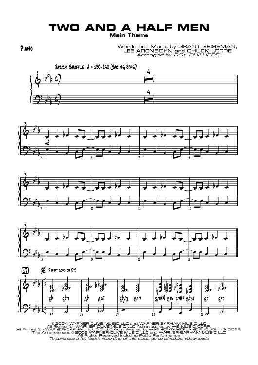 Digital Sheet Music for Two and a Half Men - Piano by Roy Phillippe, Grant Geissman, Lee Aronsohn, Chuck Lorre scored for Jazz Ensemble; id:359722