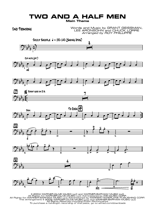 Digital Sheet Music for Two and a Half Men - Trombone 2 by Roy Phillippe, Grant Geissman, Lee Aronsohn, Chuck Lorre scored for Jazz Ensemble; id:359718