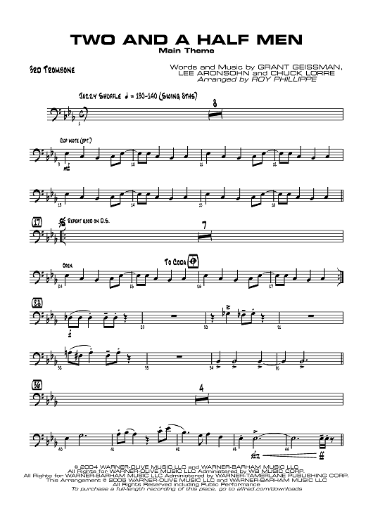 "Two and a Half Men - Trombone 3" Sheet Music by Grant Geissman
