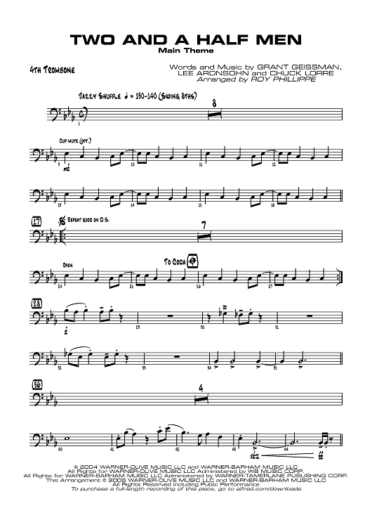 Digital Sheet Music for Two and a Half Men - Trombone 4 by Roy Phillippe, Grant Geissman, Lee Aronsohn, Chuck Lorre scored for Jazz Ensemble; id:359720