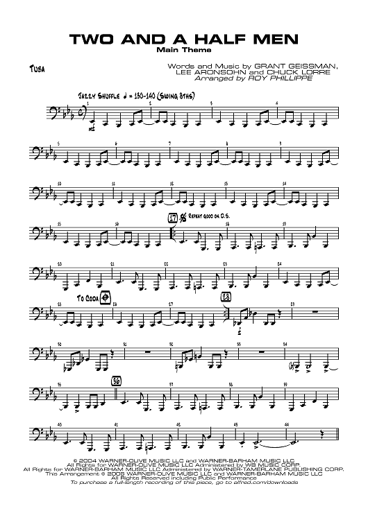 Digital Sheet Music for Two and a Half Men - Tuba by Roy Phillippe, Grant Geissman, Lee Aronsohn, Chuck Lorre scored for Jazz Ensemble; id:359729