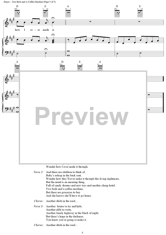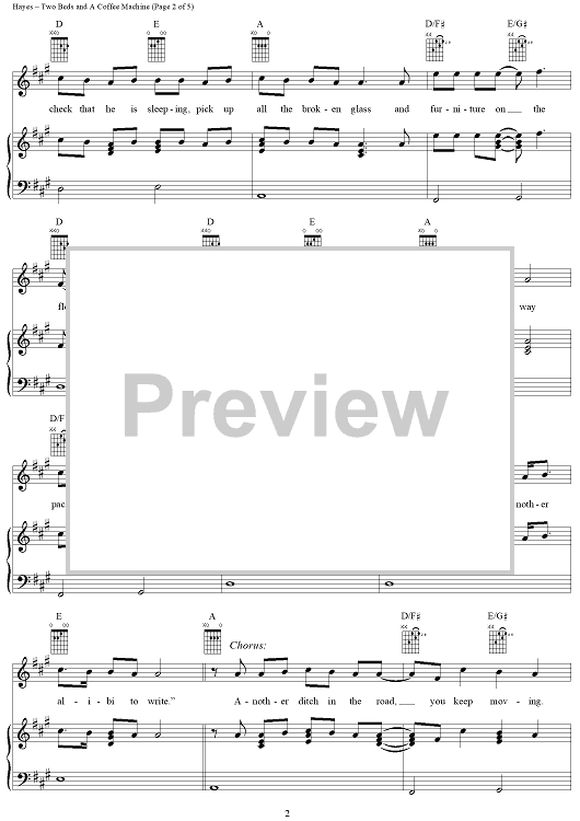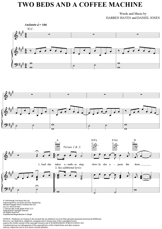 Digital Sheet Music for Two Beds and A Coffee Machine by Darren Hayes, Daniel Jones, Savage Garden scored for Piano/Vocal/Chords; id:267008