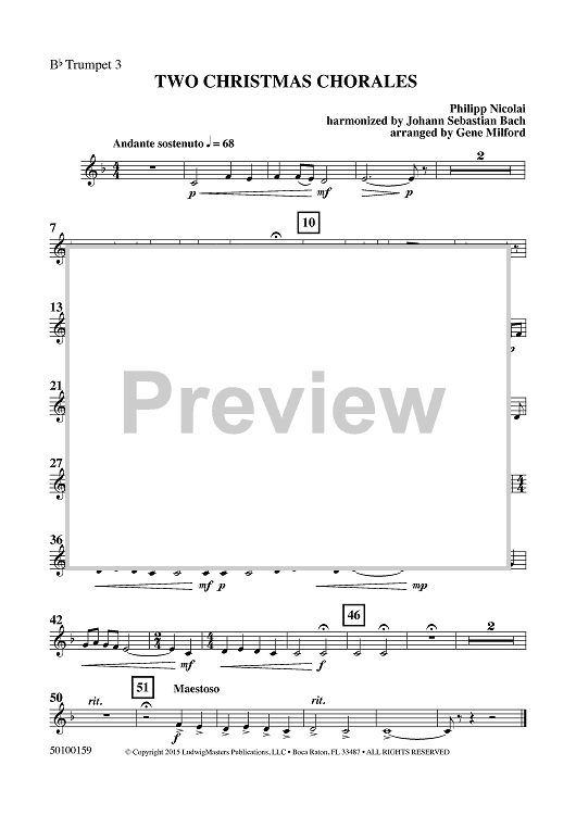 Digital Sheet Music for Two Christmas Chorales - Bb Trumpet 3 by Johann Sebastian Bach, Gene Milford scored for Concert Band; id:459721