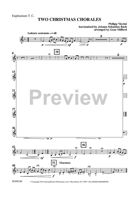 Digital Sheet Music for Two Christmas Chorales - Euphonium TC by Johann Sebastian Bach, Gene Milford scored for Concert Band; id:459727