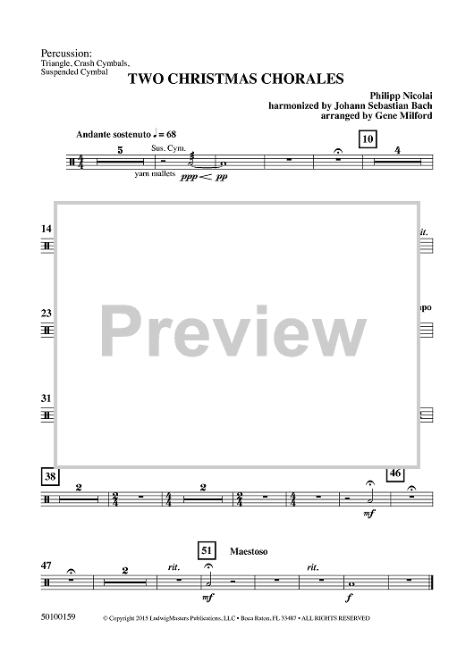 Digital Sheet Music for Two Christmas Chorales - Percussion by Philipp Nicolai, Gene Milford scored for Concert Band; id:459732