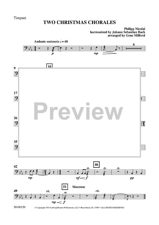 Digital Sheet Music for Two Christmas Chorales - Timpani by Johann Sebastian Bach, Gene Milford scored for Concert Band; id:459729