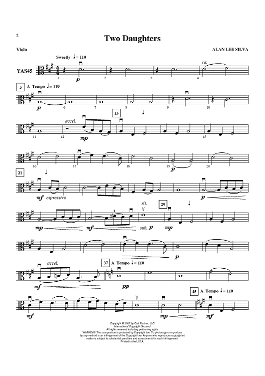 "Two Daughters - Viola" Sheet Music by Alan Lee Silva
