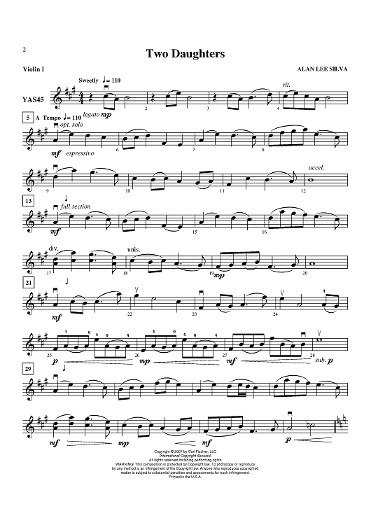 "Two Daughters - Violin 1" Sheet Music by Alan Lee Silva