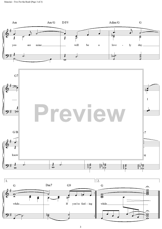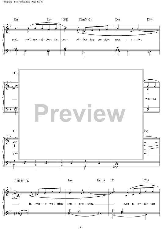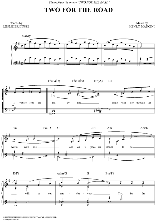 Digital Sheet Music for Two for the Road by Henry Mancini, Leslie Bricusse scored for Piano/Vocal/Chords; id:117310