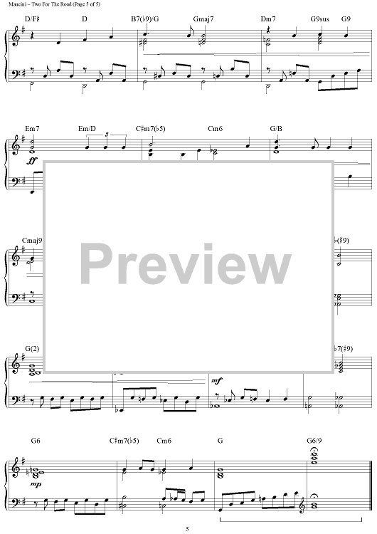 "Two For The Road" Sheet Music by Henry Mancini