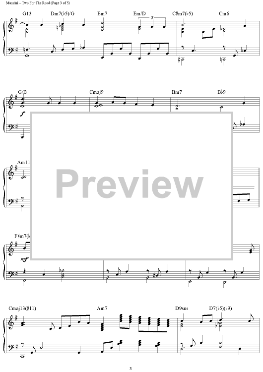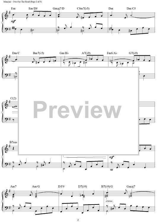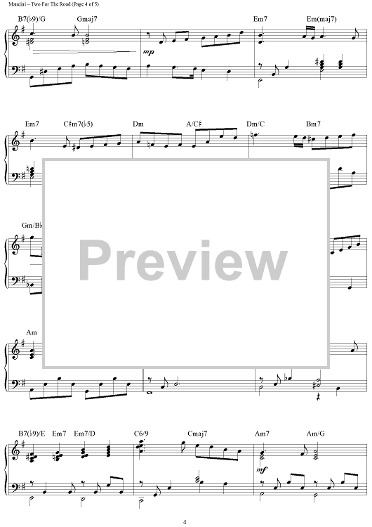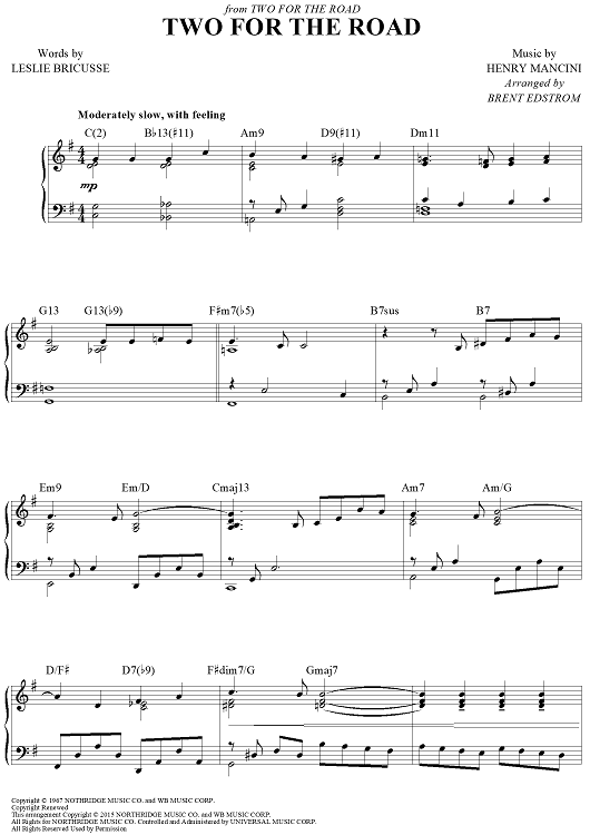 Digital Sheet Music for Two For The Road by Henry Mancini, Leslie Bricusse, Brent Edstrom scored for Piano Solo; id:458535