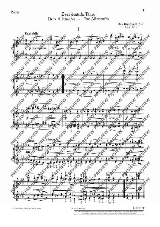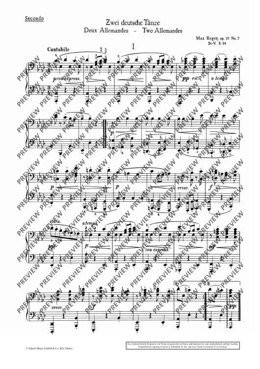 Digital Sheet Music for Two German Dances by Max Reger, Heinz Schuengeler scored for Piano (4 Hands); id:482311