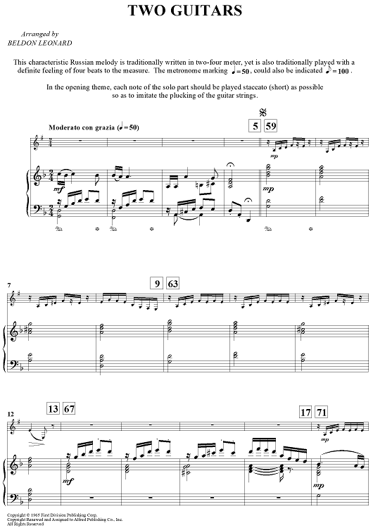 "Two Guitars" Sheet Music by Russian Melody