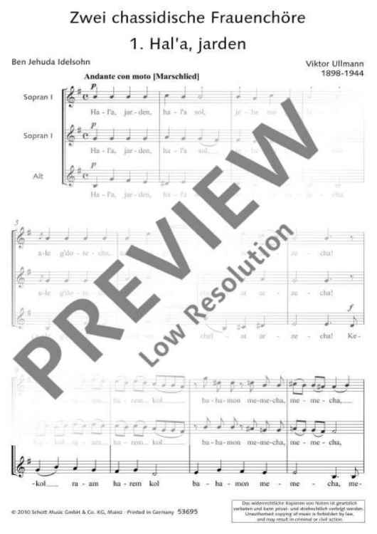 Digital Sheet Music for Two Hasidic pieces for female choir - Choral Score by Viktor Ullmann scored for Female Choir (ssa) A Cappella; id:477955