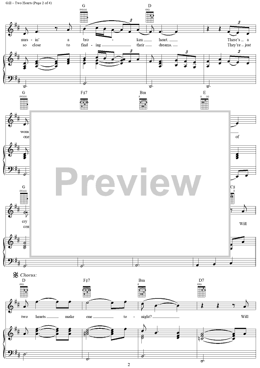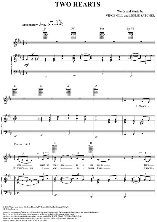 Digital Sheet Music for Two Hearts by Vince Gill, Leslie Satcher scored for Piano/Vocal/Chords; id:296965