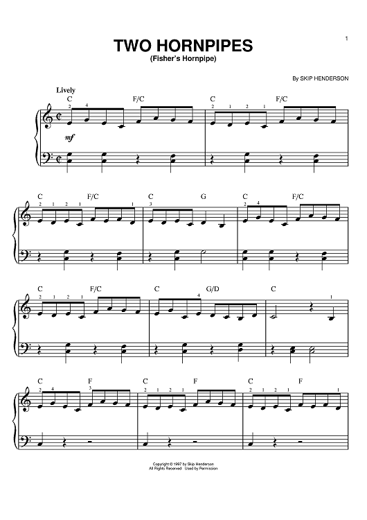 Digital Sheet Music for Two Hornpipes (Fisher's Hornpipe) by Skip Henderson scored for Easy Piano/Chords; id:395469