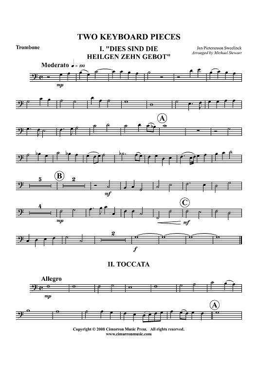 "Two Keyboard Pieces - Trombone" Sheet Music by Jan Pieterszoon Sweelinck