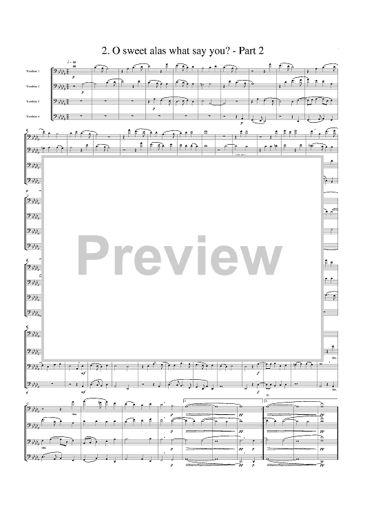 Digital Sheet Music for Two Madrigals, Vol. 2 - from Morley's "First Book of Madrigals to 4 Voices" (1594) - Score by Thomas Morley, Roger McDuffie scored for Trombone Quartet; id:429055