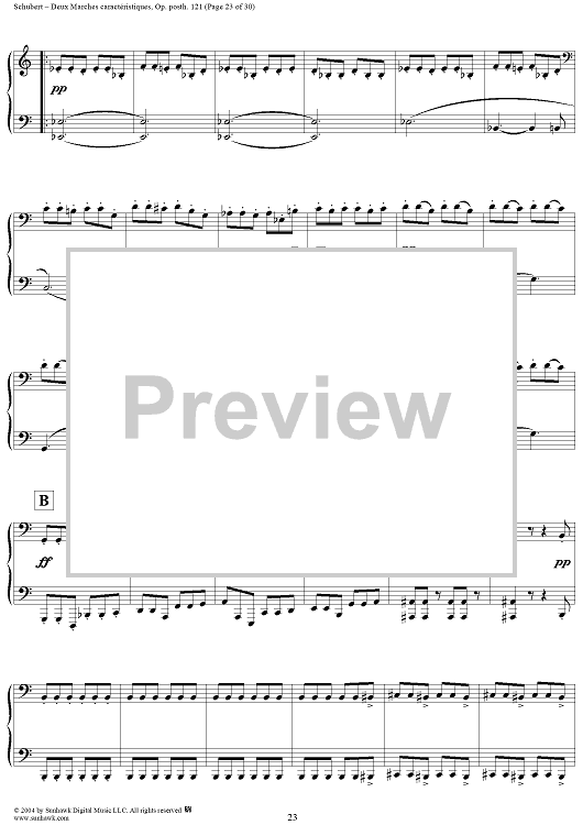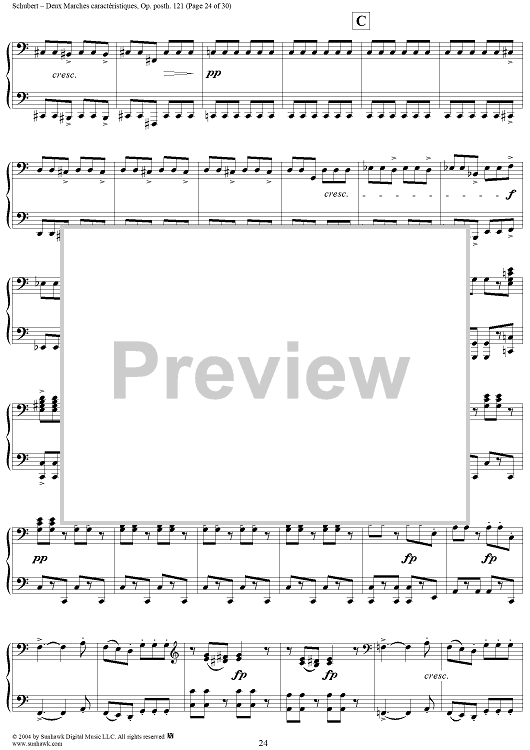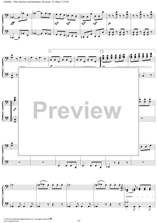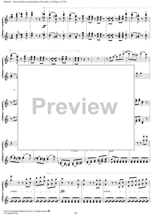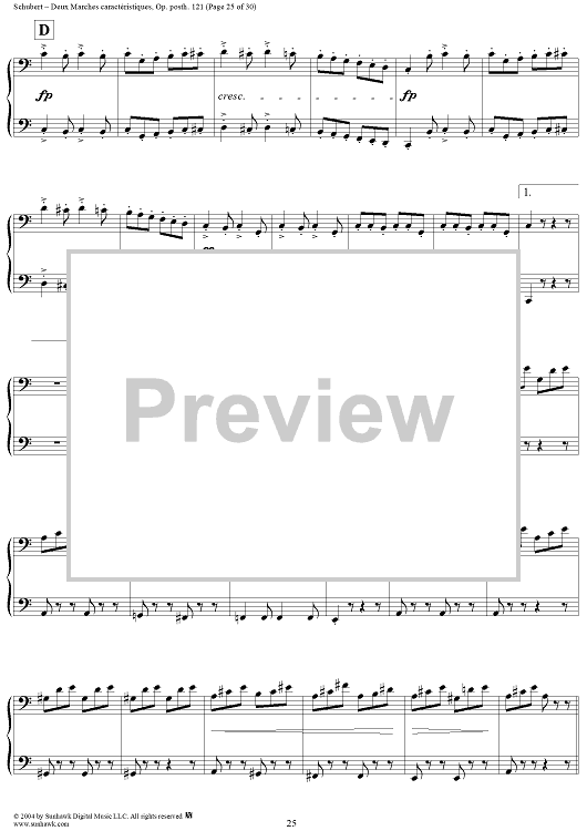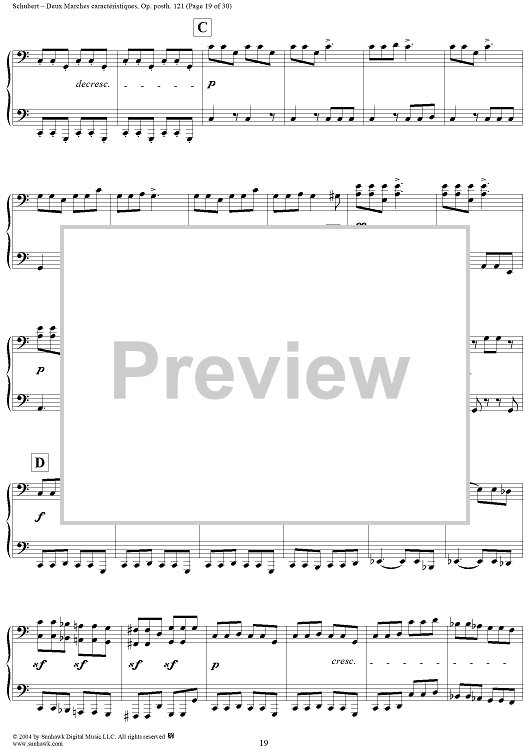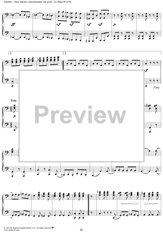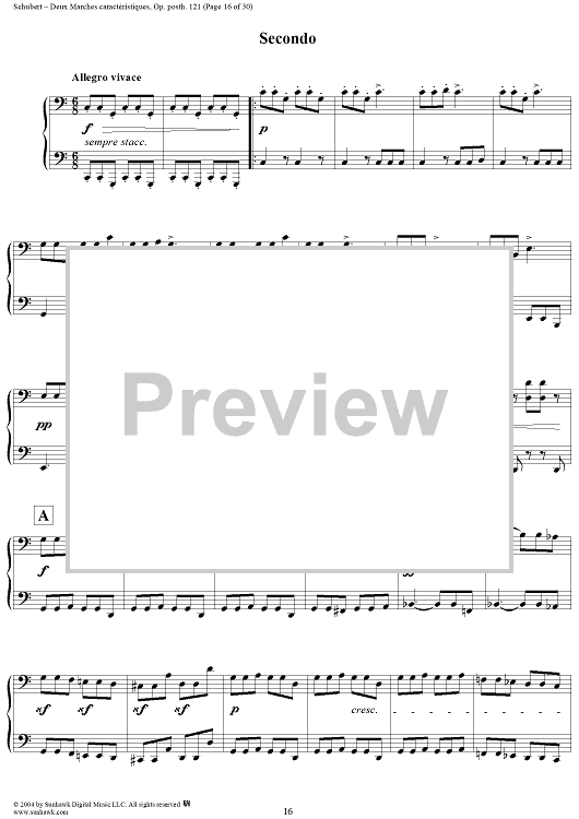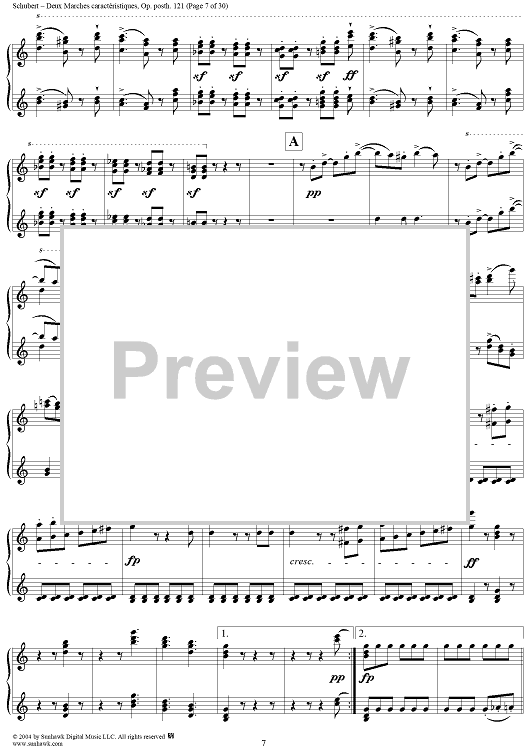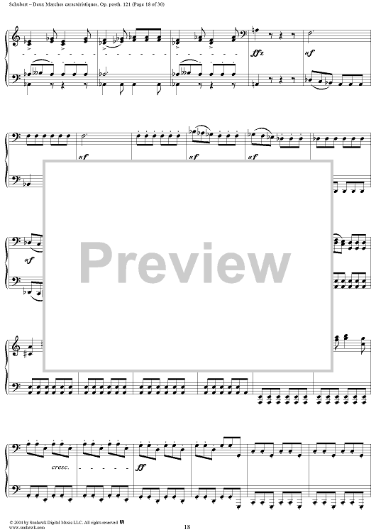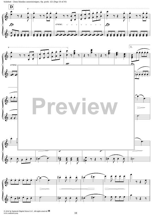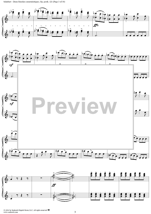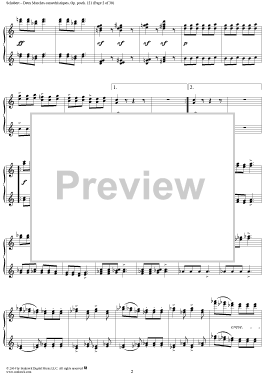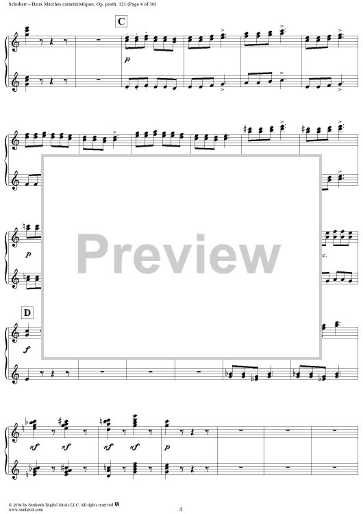 Digital Sheet Music for Two Marches caractéristiques in C Major, Op.posth 121 by Franz Schubert scored for 1 Piano, 4 Hands; id:297974