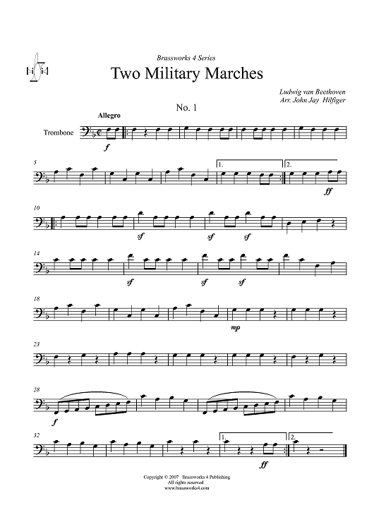 Digital Sheet Music for Two Military Marches - Trombone by Ludwig van Beethoven, John Jay Hilfiger scored for Brass Quintet; id:364221