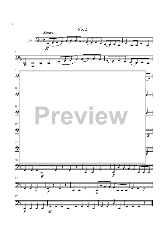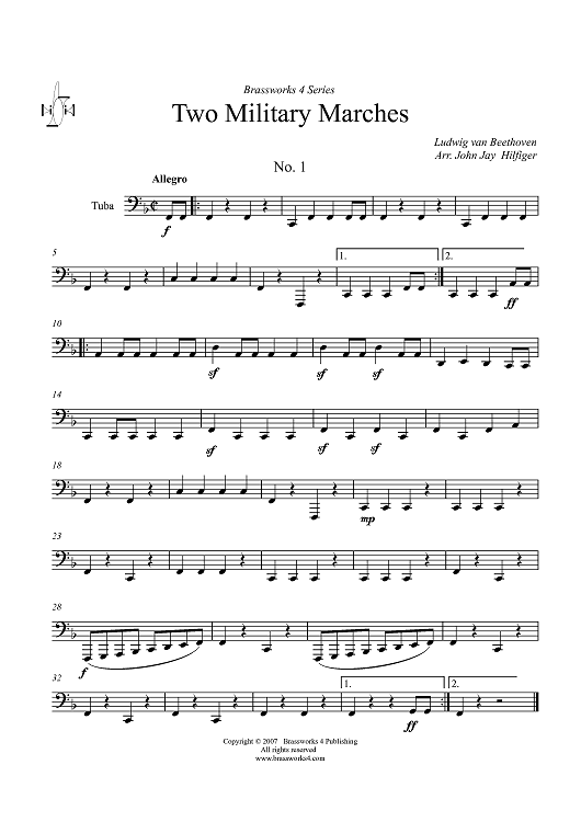 Digital Sheet Music for Two Military Marches - Tuba by Ludwig van Beethoven, John Jay Hilfiger scored for Brass Quintet; id:364222