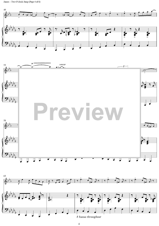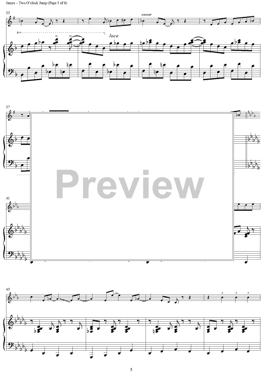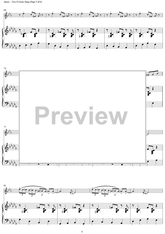 Digital Sheet Music for Two O'clock Jump - Piano Score by Count Basie, Benny Goodman, Harry James scored for Trumpet and Piano; id:365050