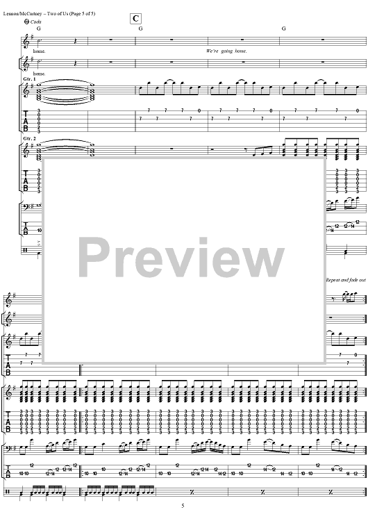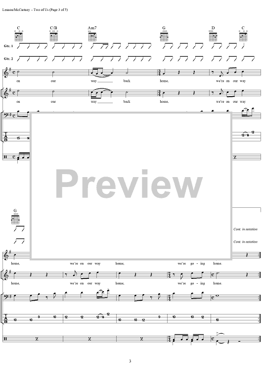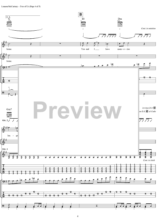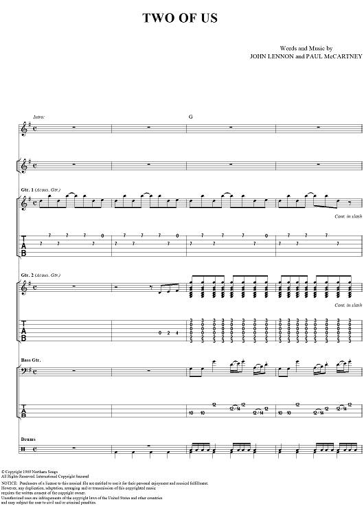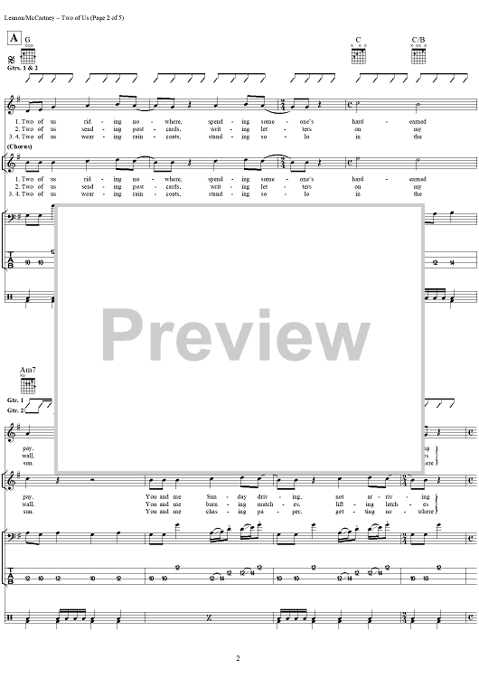 "Two of Us" Sheet Music by The Beatles