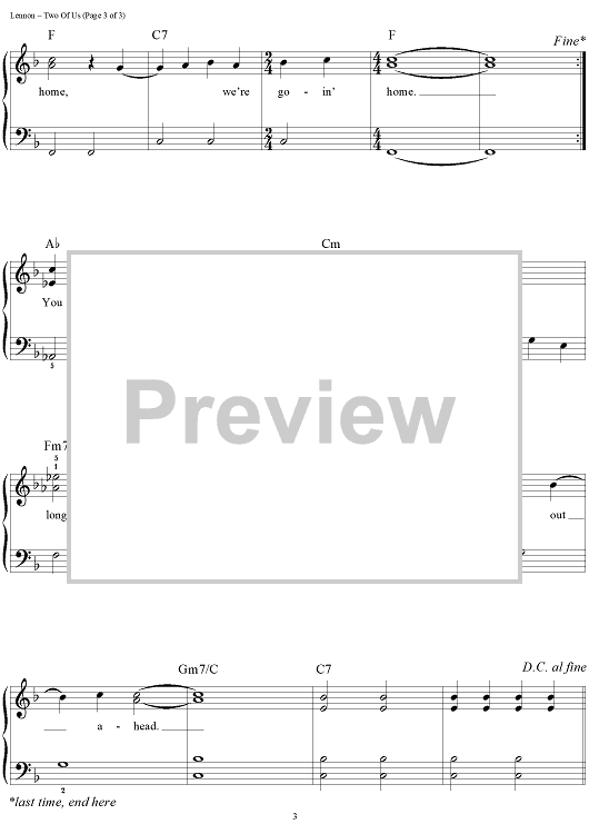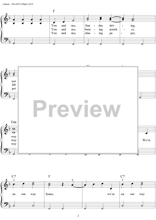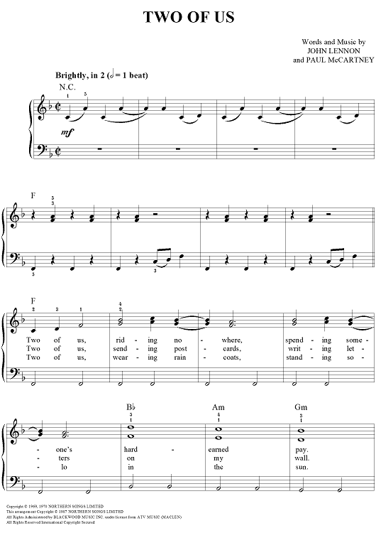 Digital Sheet Music for Two Of Us by Paul McCartney, The Beatles, John Lennon scored for Easy Piano/Vocal/Chords; id:452016