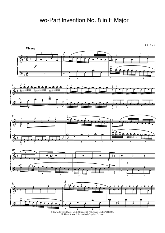 Digital Sheet Music for Two-Part Invention No. 8 in F Major by Johann Sebastian Bach scored for Piano; id:378869