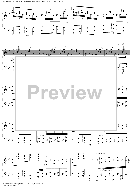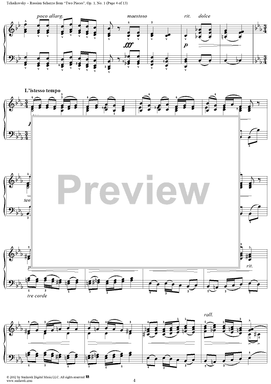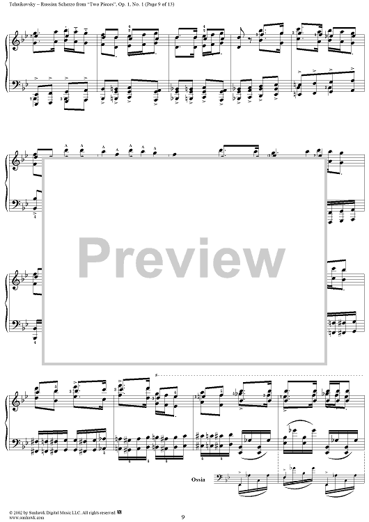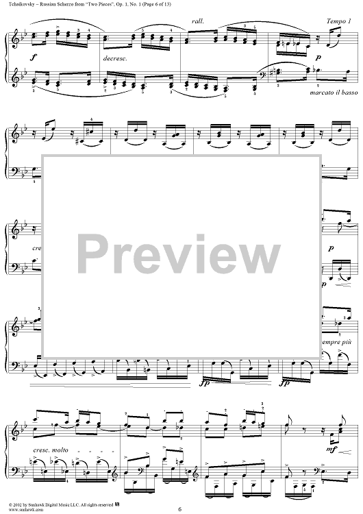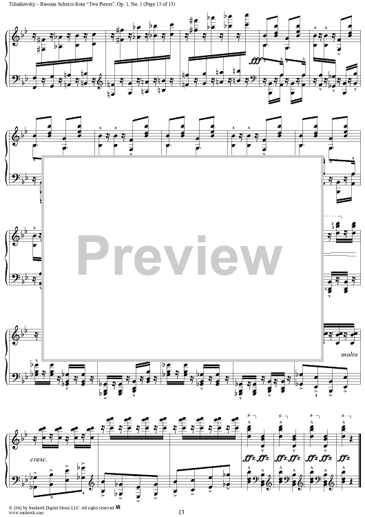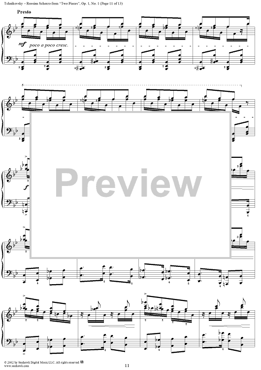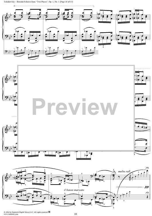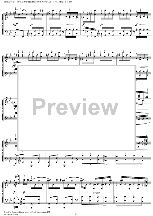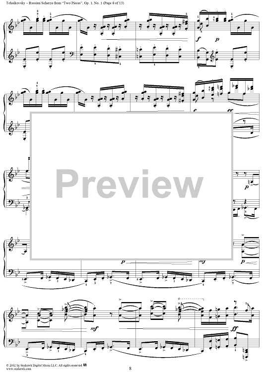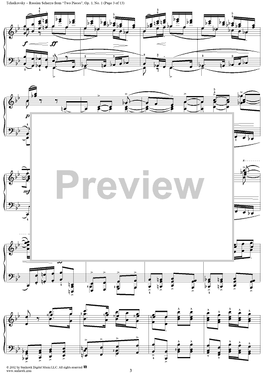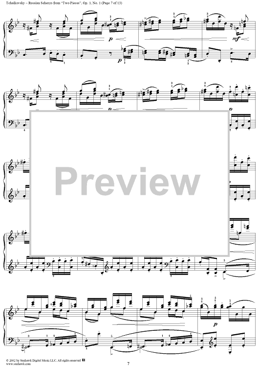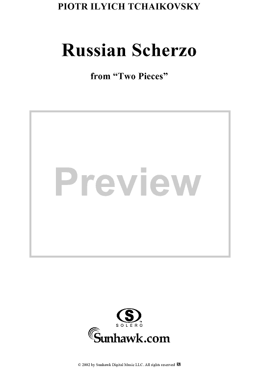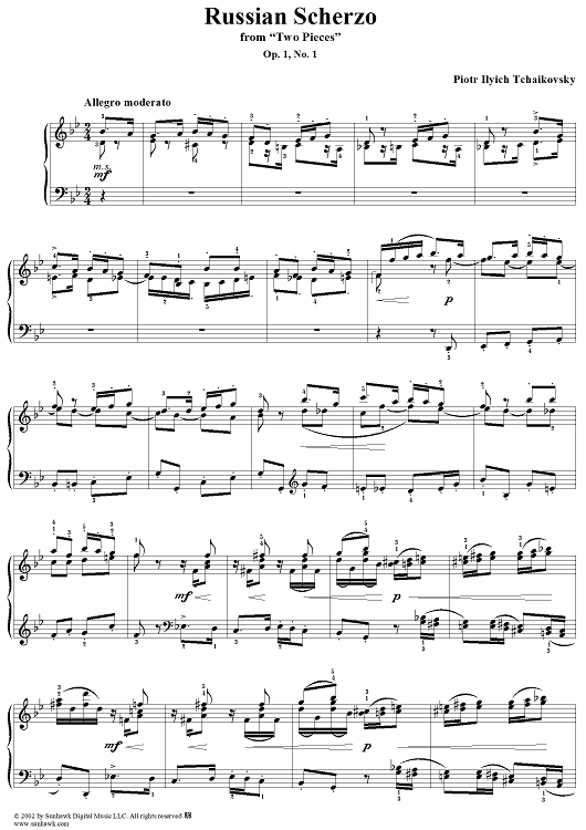 Digital Sheet Music for Two Pieces. No. 1. Scherzo à la russe in B-flat Major (B-dur) by Peter Ilyich Tchaikovsky scored for Piano Solo; id:259751