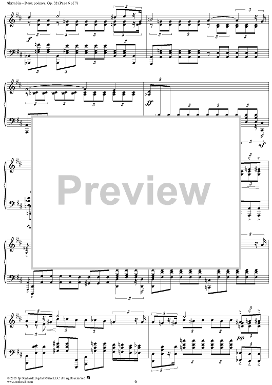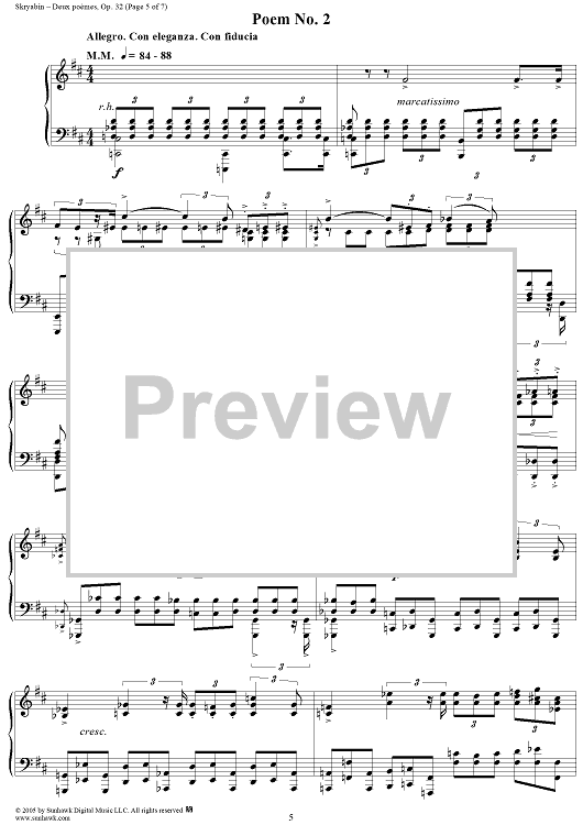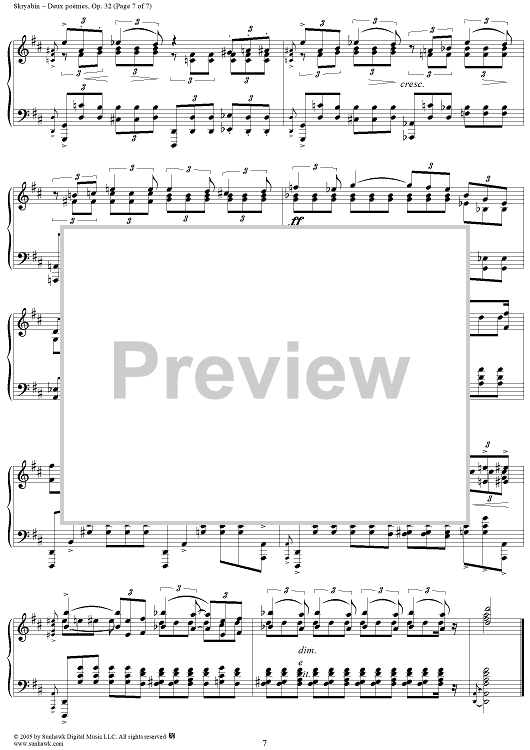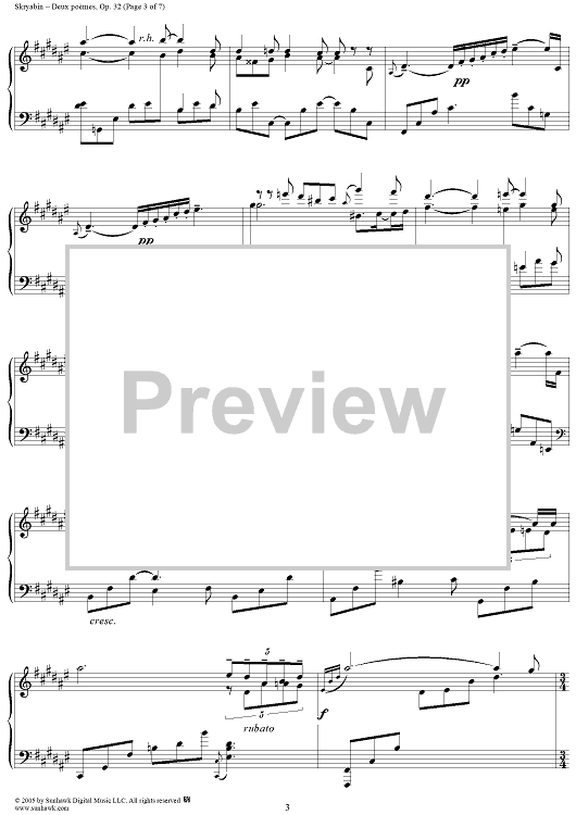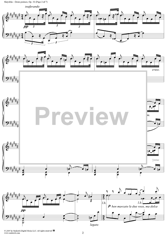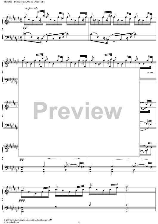 Digital Sheet Music for Two Poems, Op. 32 by Alexander Scriabin scored for Piano Solo; id:311381