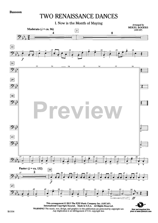Digital Sheet Music for Two Renaissance Dances - Bassoon by Thomas Morley, Mekel Rogers, Giorgio Mainerio scored for Concert Band; id:440220