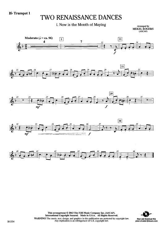 Digital Sheet Music for Two Renaissance Dances - Bb Trumpet 1 by Thomas Morley, Mekel Rogers, Giorgio Mainerio scored for Concert Band; id:440227