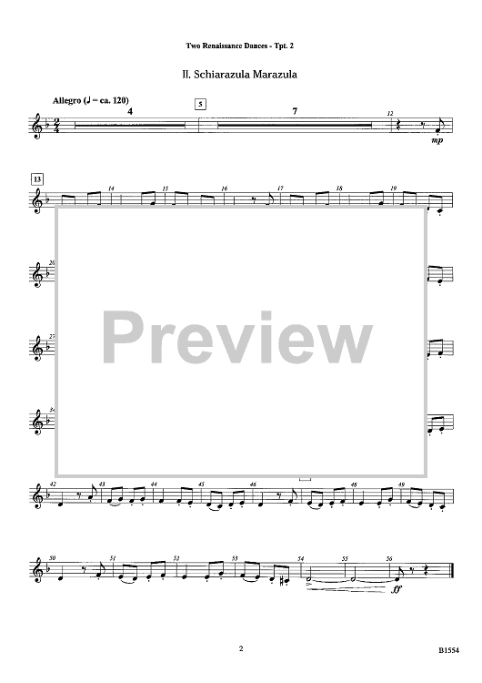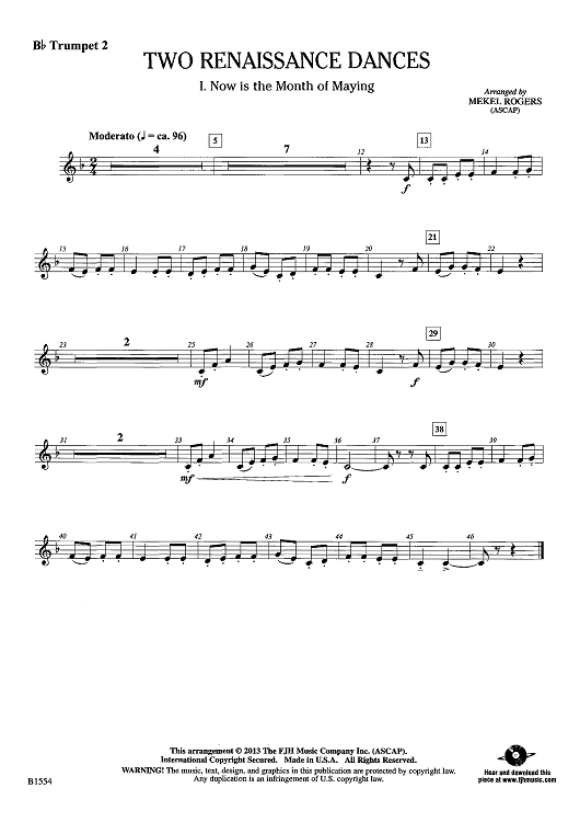 Digital Sheet Music for Two Renaissance Dances - Bb Trumpet 2 by Thomas Morley, Mekel Rogers, Giorgio Mainerio scored for Concert Band; id:440228