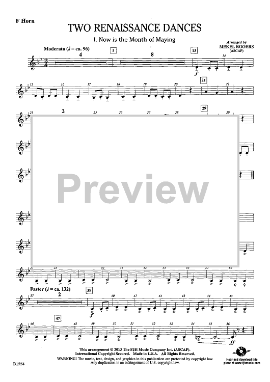 Digital Sheet Music for Two Renaissance Dances - F Horn by Thomas Morley, Mekel Rogers, Giorgio Mainerio scored for Concert Band; id:440229