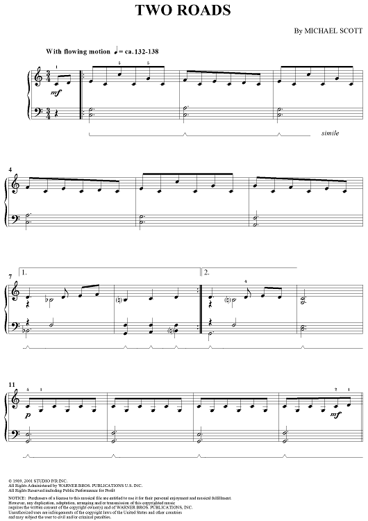 Digital Sheet Music for Two Roads by Michael Scott scored for Piano Solo; id:284375