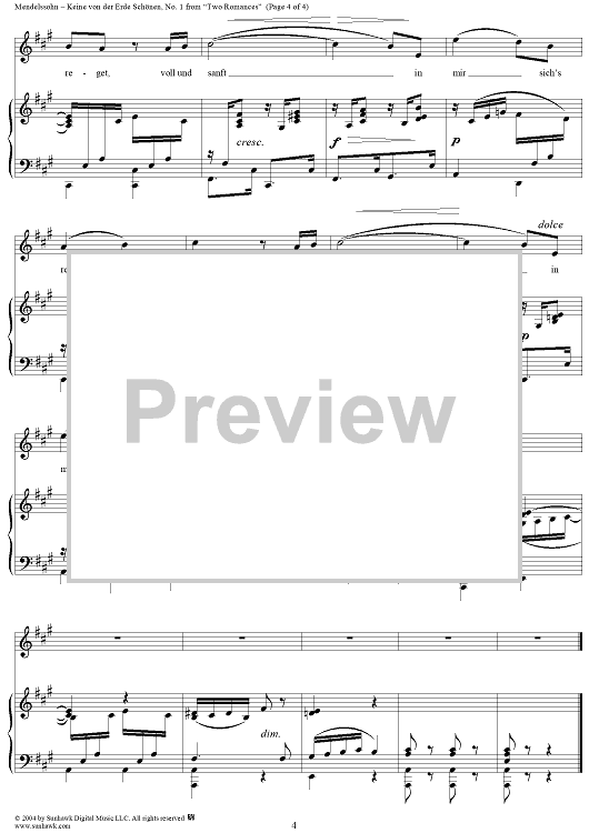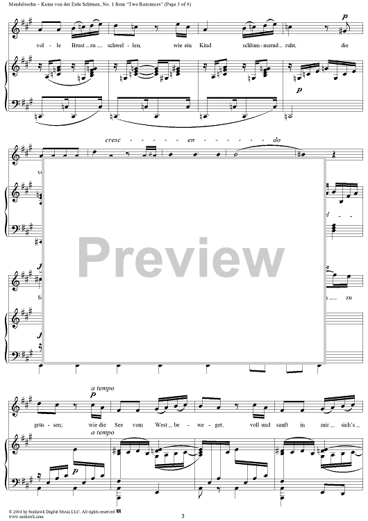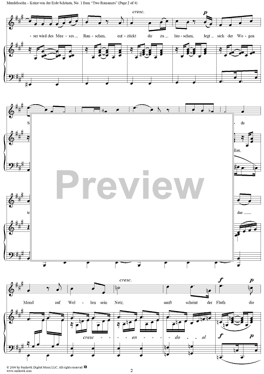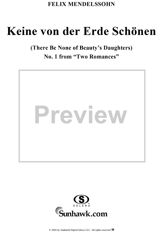 Digital Sheet Music for Two Romances, No. 1: "There Be None of Beauty's Daughters" (Keine Von Der Erde Schönen) by Felix Mendelssohn scored for Voice/Piano; id:252102