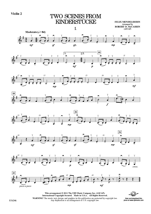 Digital Sheet Music for Two Scenes from Kinderstücke - Violin 2 by Felix Mendelssohn, Robert D. McCashin scored for String Orchestra; id:421795