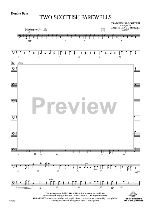 Digital Sheet Music for Two Scottish Farewells - Double Bass by Traditional Scottish, Carrie Lane Gruselle scored for String Orchestra; id:436917