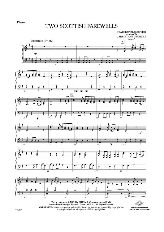 "Two Scottish Farewells - Piano" Sheet Music by Traditional Scottish
