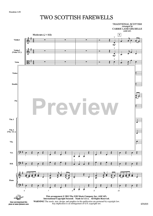 Digital Sheet Music for Two Scottish Farewells - Score by Traditional Scottish, Carrie Lane Gruselle scored for String Orchestra; id:436912