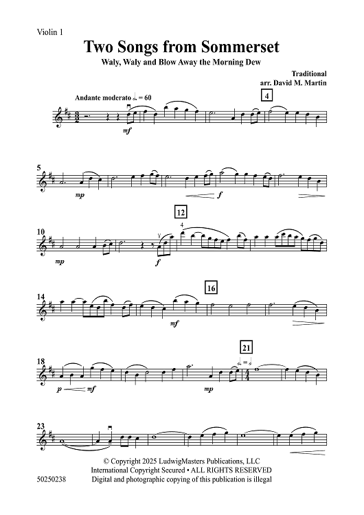 Digital Sheet Music for Two Songs from Sommerset - Violin 1 by David Martin, Traditional scored for String Orchestra; id:508669