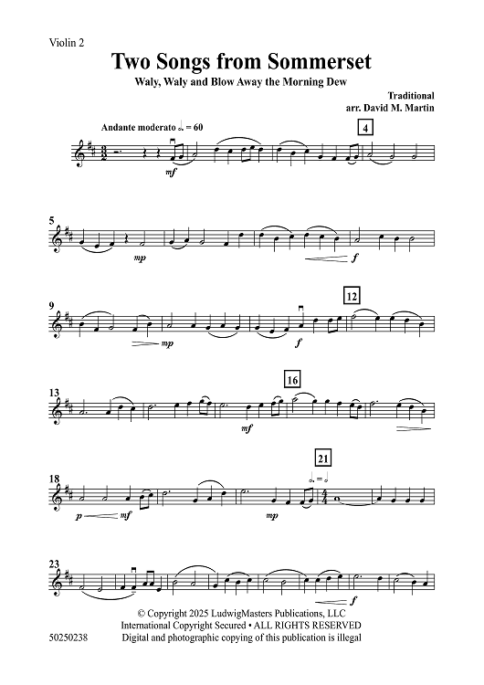 Digital Sheet Music for Two Songs from Sommerset - Violin 2 by David Martin, Traditional scored for String Orchestra; id:508670
