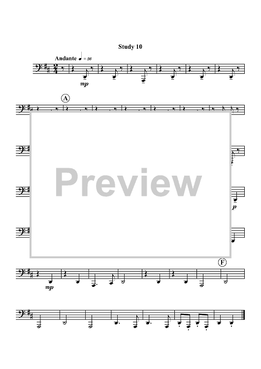 Digital Sheet Music for Two Studies from "20 Studies for Guitar" - Trombone 4 by Frank Darmiento, Fernando Sor scored for Trombone Quartet; id:319685