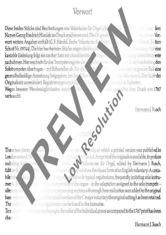 Digital Sheet Music for Two Voluntaries by George Frideric Handel, Hermann J. Busch scored for 2 Trumpets And Organ; id:473846