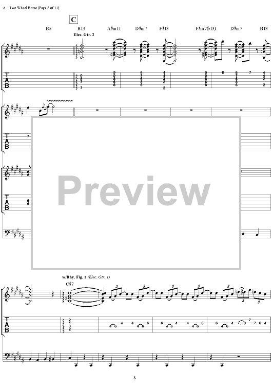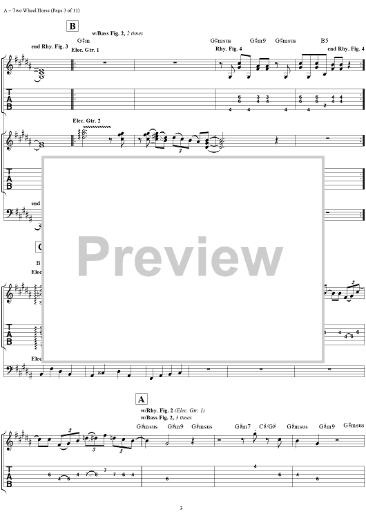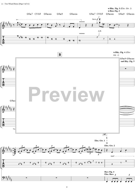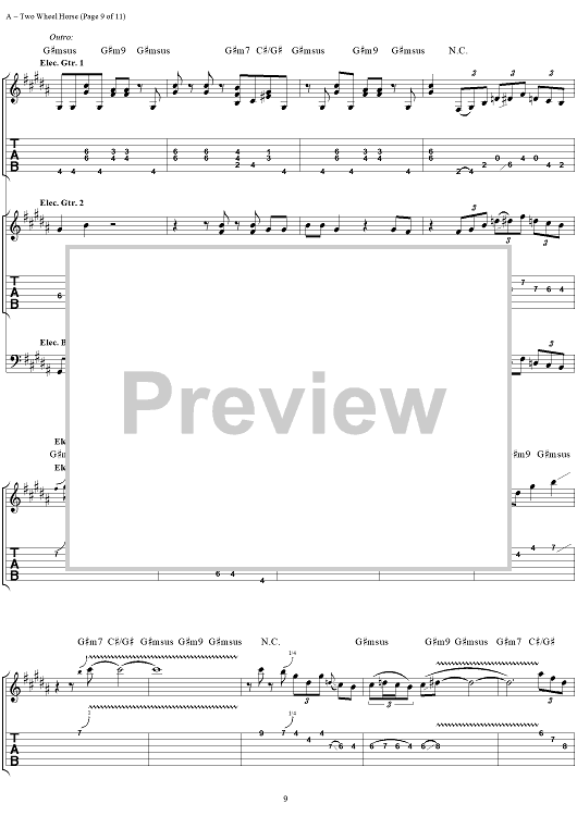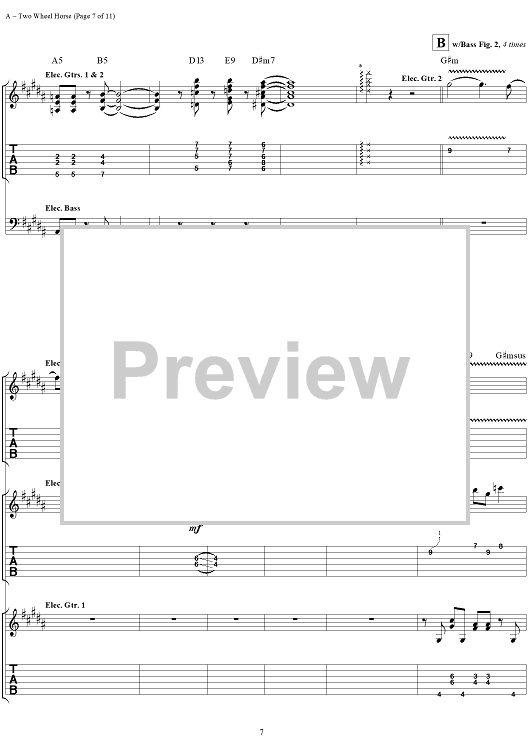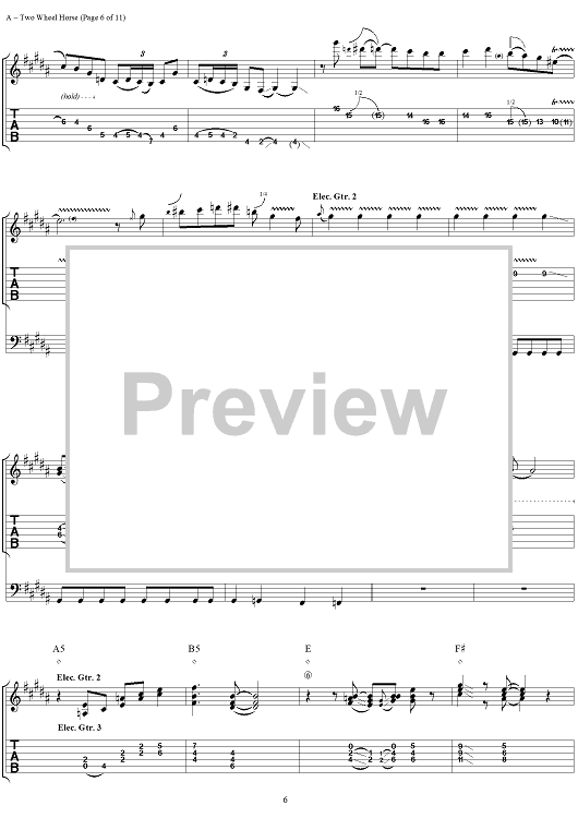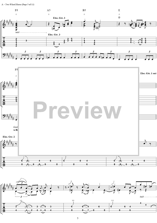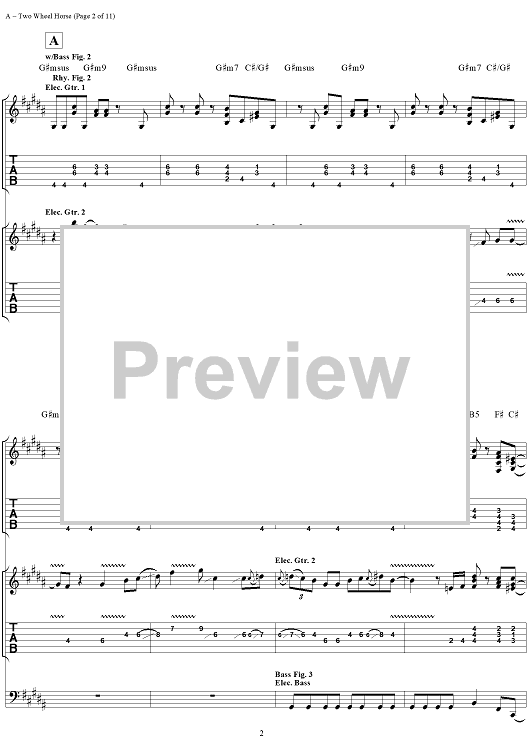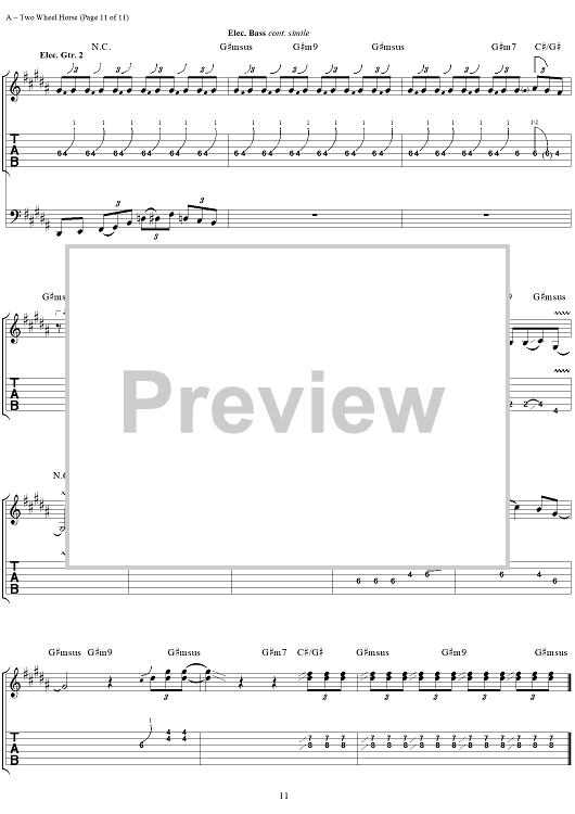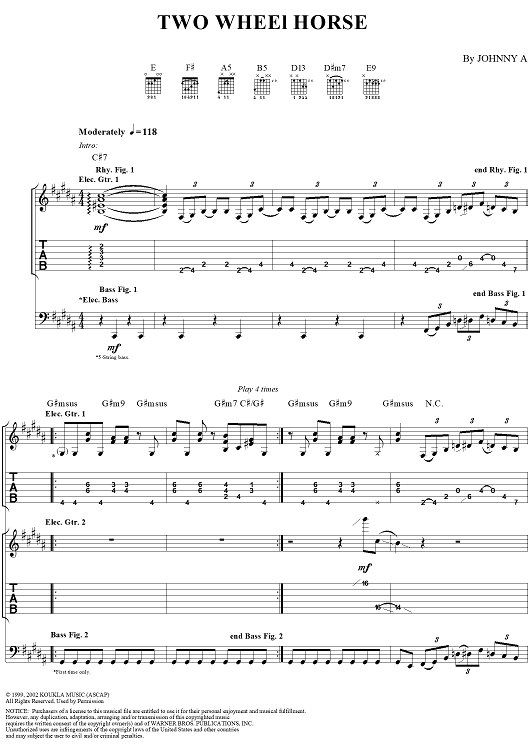 Digital Sheet Music for Two Wheel Horse by Johnny A. scored for Guitar Tab/Bass; id:289630