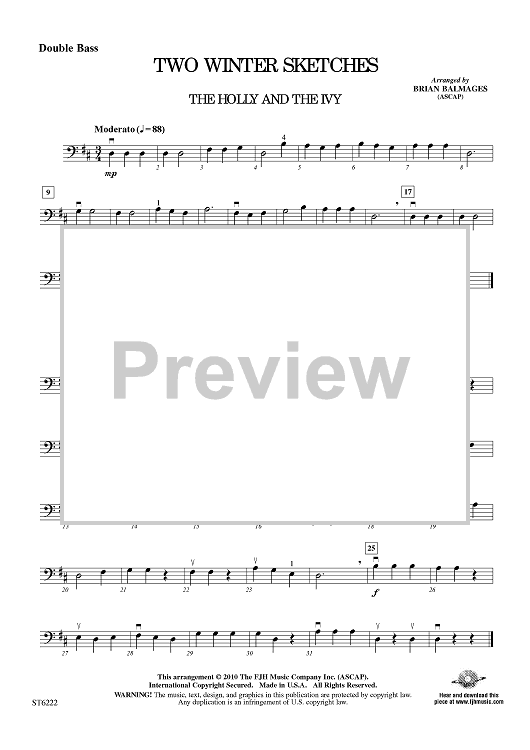 Digital Sheet Music for Two Winter Sketches - Double Bass by Traditional, Brian Balmages scored for Orchestra; id:411659