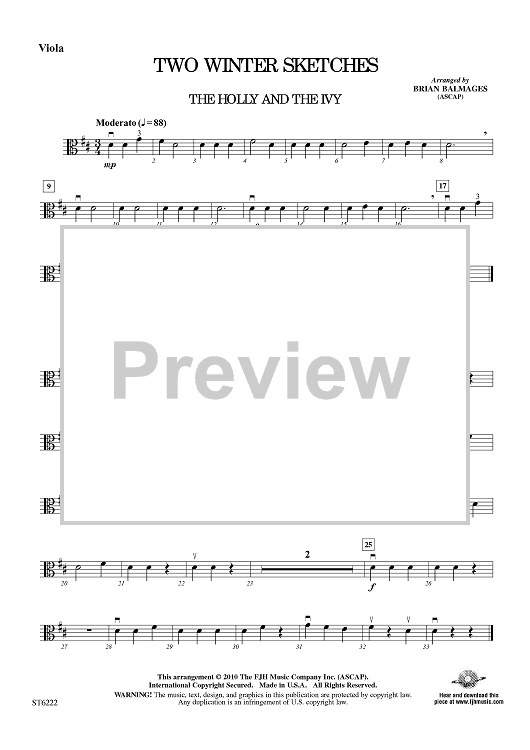 Digital Sheet Music for Two Winter Sketches - Viola by Traditional, Brian Balmages scored for Orchestra; id:411657